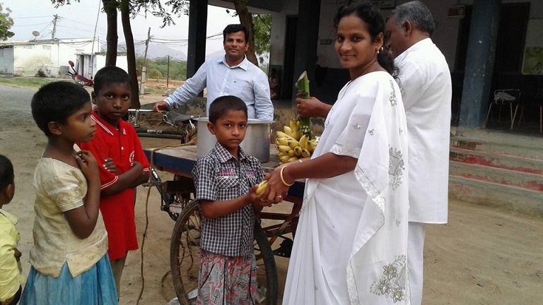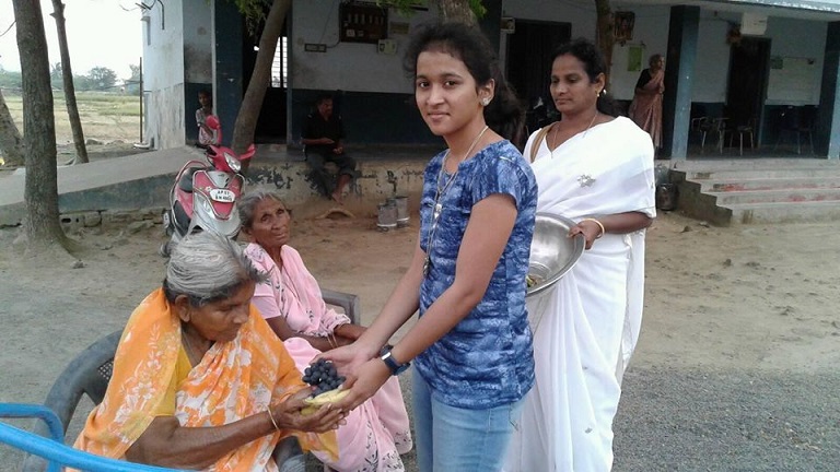 On Good Friday Visiting charity at Phirangipuram, Nirmal Hrudhaya Distributing fruit to the orphan kids and oldaged people.